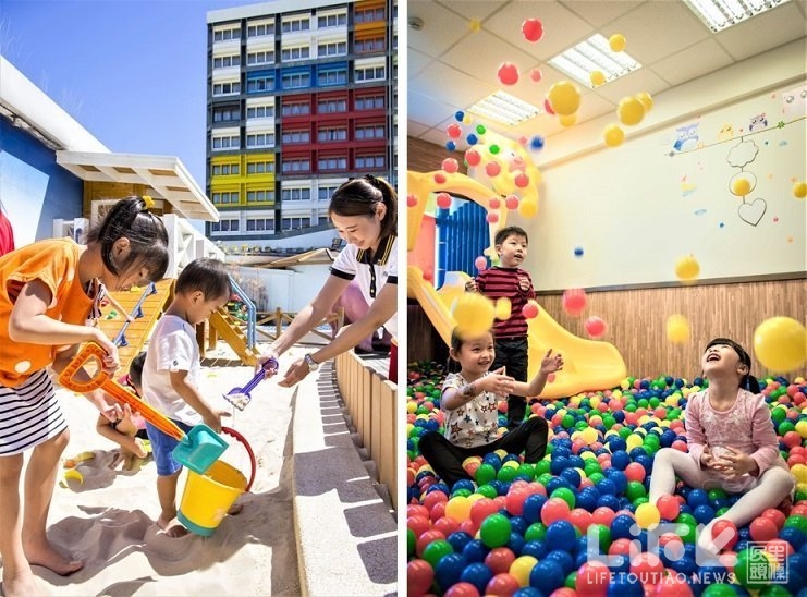 戶外沙坑區與室內歡樂球池區是親子遊樂的焦點區塊