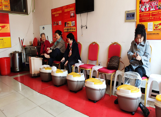 老年人正在會心堂體驗中藥泡腳。李洪濤攝