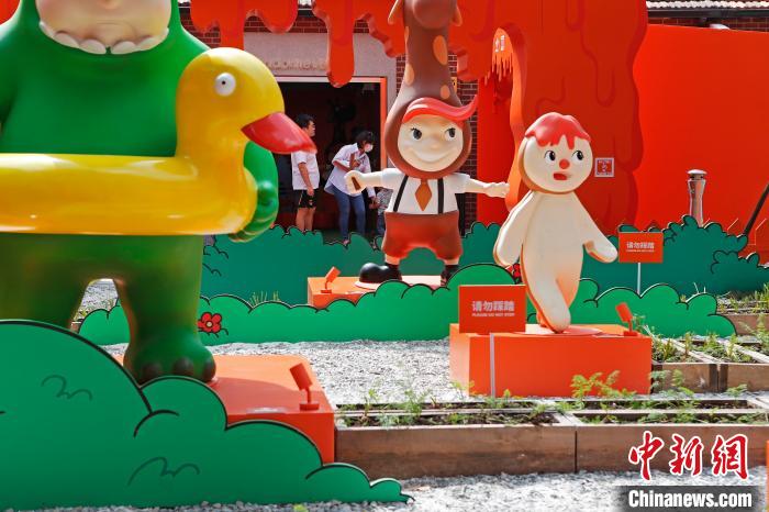 遊客在愚園路特色小店門口合影留念。 殷立勤 攝