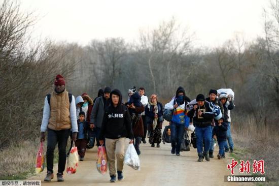 當地時間2020年3月1日,難民們正在前往土耳其與希臘邊境。 土耳其政府2月27日宣布,不再阻止難民進入歐洲。