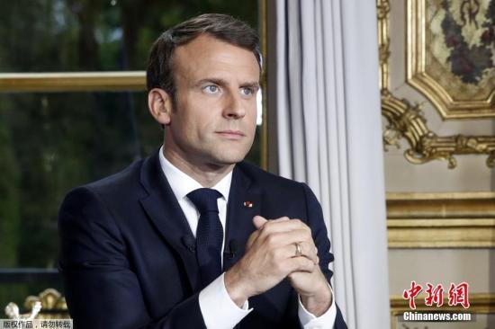 圖為馬克龍視頻講話畫面。中新社記者 李洋 攝