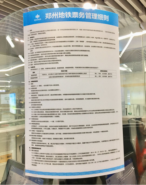 《鄭州地鐵票務管理細則》  耿記安/攝