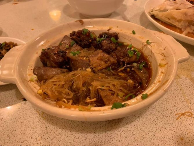 滷魚皮 ( 下)、燙青菜(中 )、肉燥意麵(上)