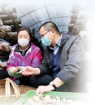 陝西留壩縣的技術員(右)正指導菇農。 方毅君攝(人民視覺)