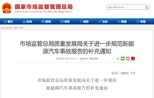 根據《市場監管總局辦公廳關於進一步加強新能源汽車產品召回管理的通知》(市監質函〔2019〕531號),為強化新能源汽車產品安全召回監管,進一步規範新能源汽車事故報告制度,現補充通知如下: