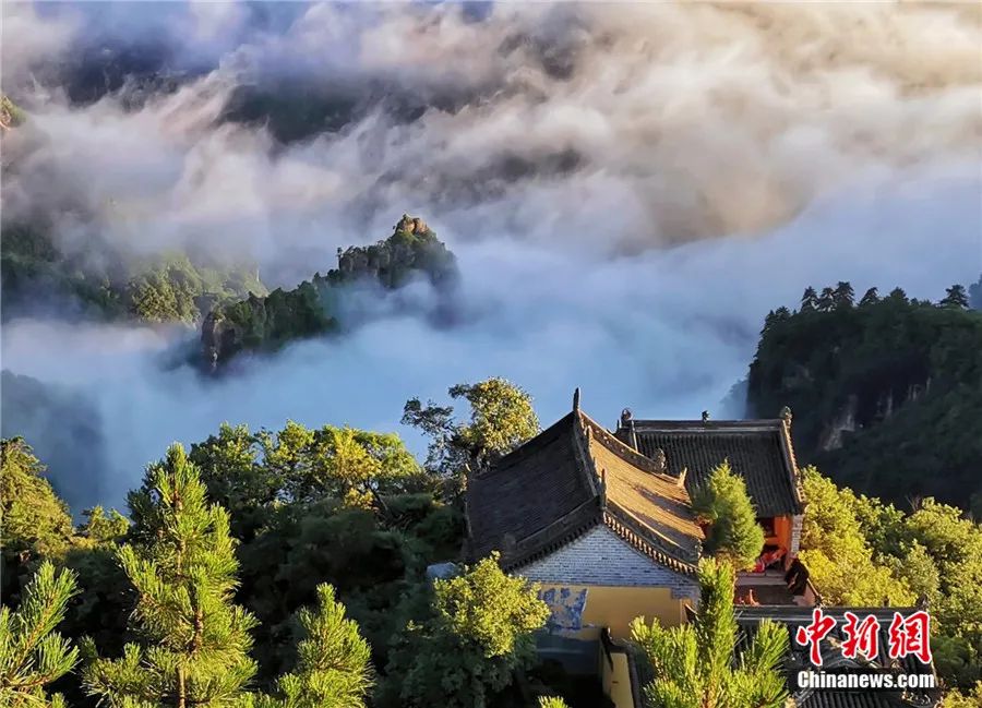 春之崆峒,彈箏湖兩岸十里桃花“映山紅”,與古剎道觀交相輝映。夏之崆峒,雨後雲海翻滾,草木若隱若現。冬之崆峒,霧凇輕盈潔白,宛如瓊樹銀花。