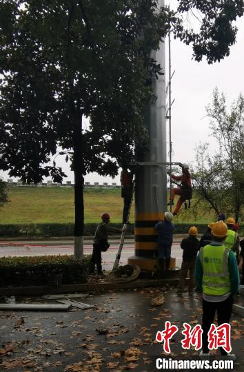 資料圖電力桿塔掛載5G基站施工 王政 攝